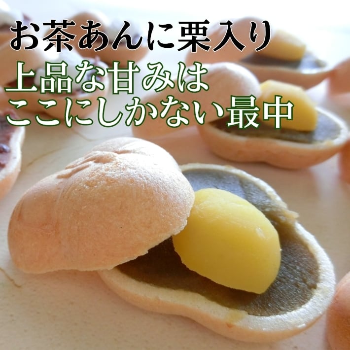 甘さ控えめで上品な味わい、そしてかわいらしい茶の実の形をした【茶吞み夫婦最中】。